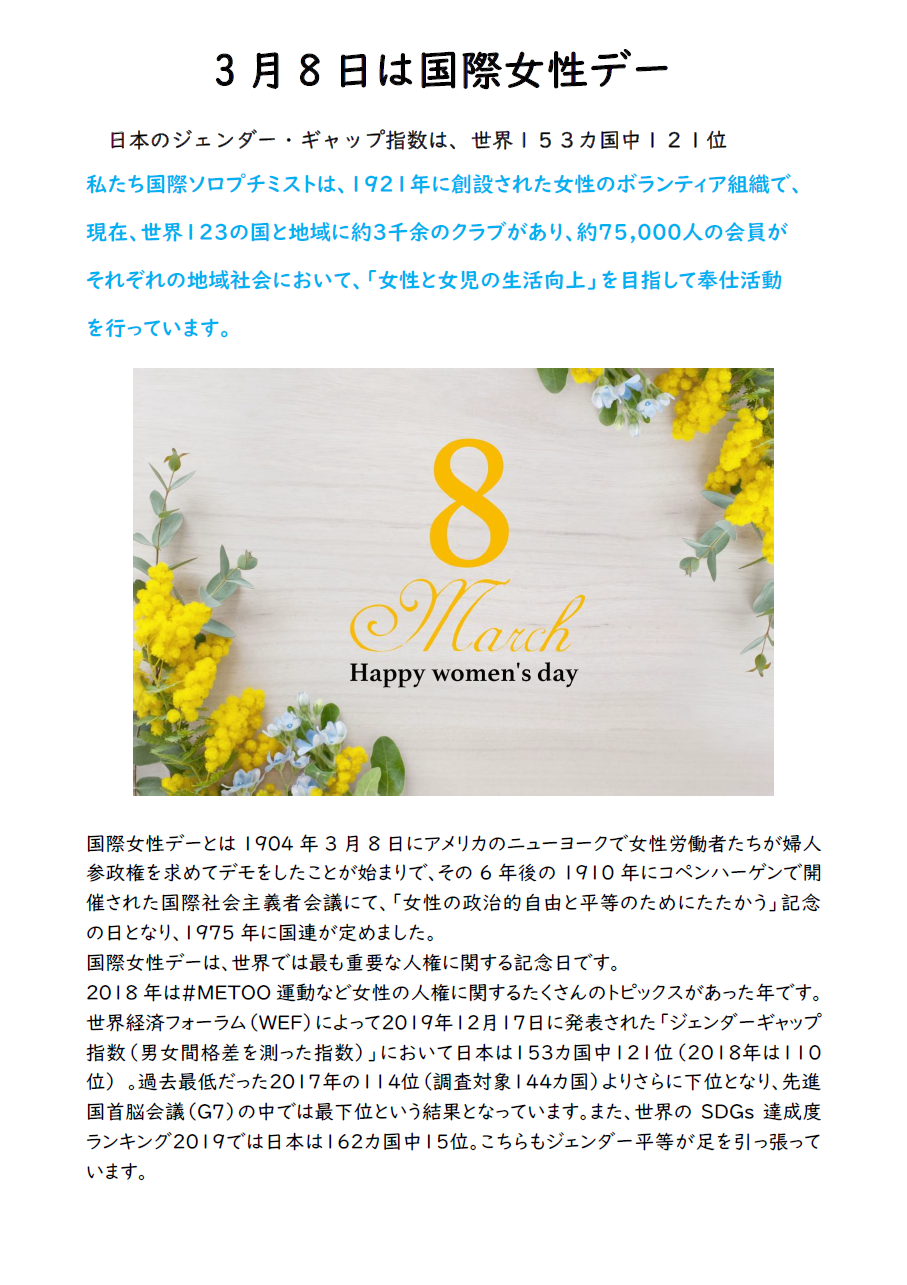 2019-2020年期ソロプチミスト「 夢を生きる:女性のための教育・訓練賞」日本東リジョン賞に宇都宮クラブ推薦の渡部麻菜さんが選出されました 。 審査員には東洋英和女学院大学名誉教授・特定NPO法人国連UNHCR協会特別顧問 滝澤三郎氏、社会学者・東京大学名誉教授・認定NPO法人ウイメンズアクションネットワーク理事長 上野千鶴子氏 、日本東リジョン...