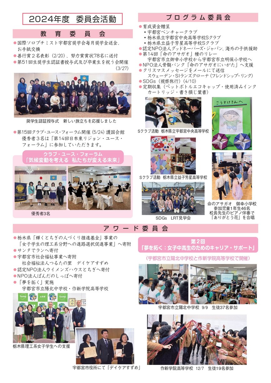 国際ソロプチミストアメリカ連盟表彰