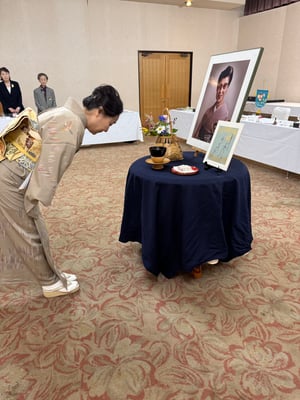 千嘉代子様のお誕生を祝し、遺影にお花を飾り、お茶を差し上げ、遺徳を偲ばせて頂きます。