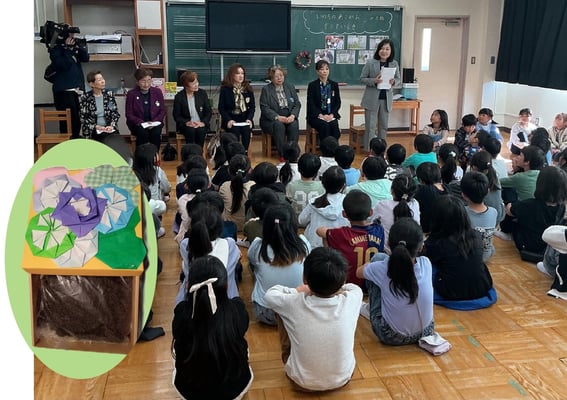 15校目となる宇都宮市立明保小学校に訪問し、2年生児童83名が、宇都宮市立御幸小学校より引継いだ種を蒔き、1年生で培った経験を生かしてお世話をし、収穫まで行ったアサガオの種を贈呈して頂きました。種の他にも、「種がたくさんとれて良かった。」、「きれいなアサガオの花がたくさん咲いて良かった。」などの感想や歌のプレゼント(ビリーブ)があり、たくさんの笑顔も拝見でき、とても心温まる贈呈式でした。